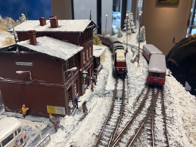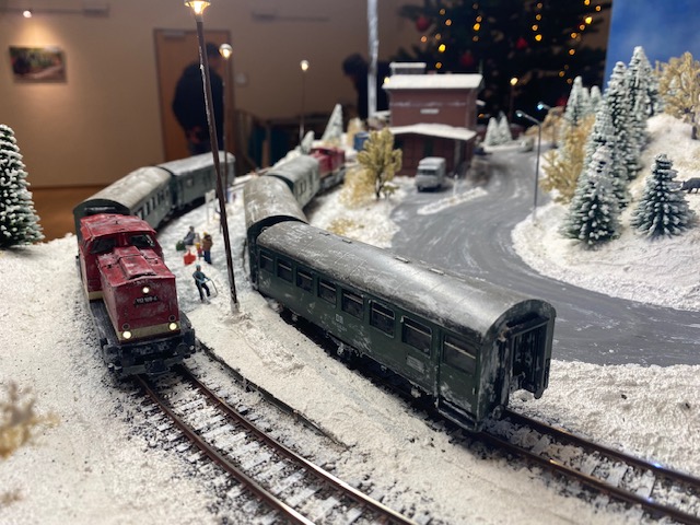 gemeinsam mit befreundeten Modellbahnclubs und Freunden sehenswerte Modelleisenbahnen und Diorahmen